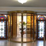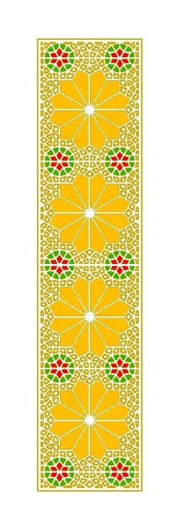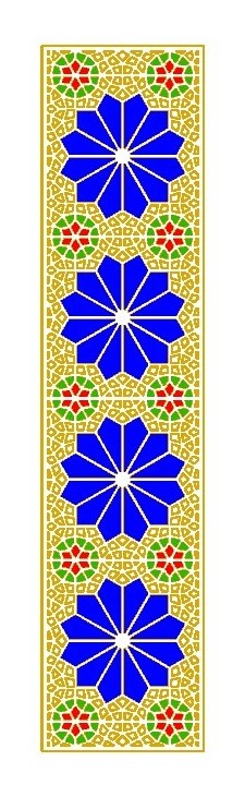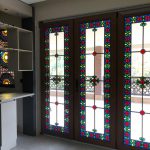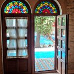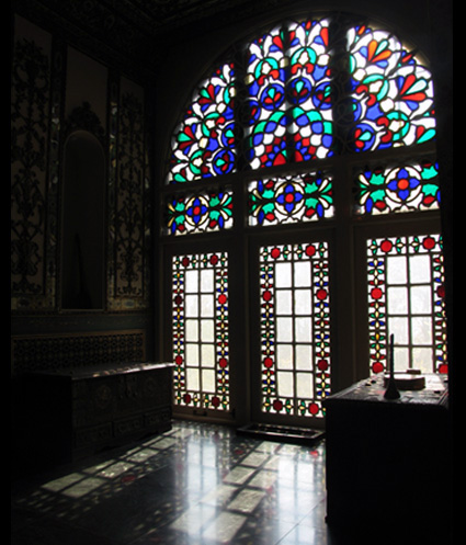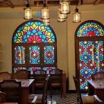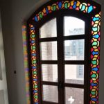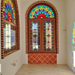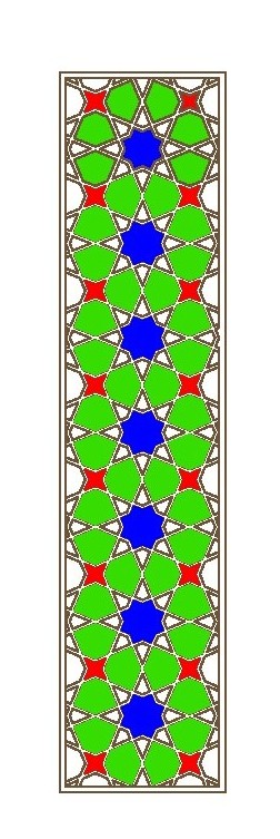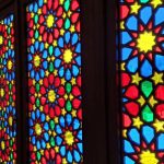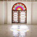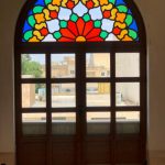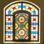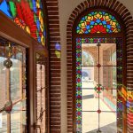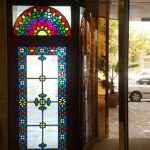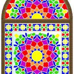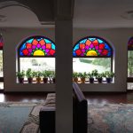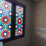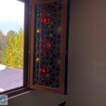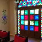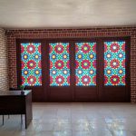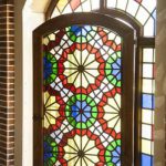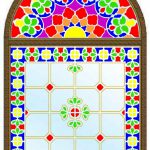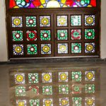 5- شیشه های رنگی با رنگ های مختلف و گره کاری های اشکال هندسی و اسلیمی